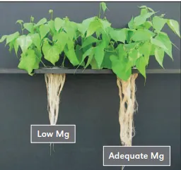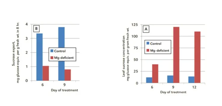 O magnésio é cofator essencial para diversas reações que possibilitam o carregamento e o transporte de sacarose pelo floema. Em condições de deficiência, observa-se o acúmulo de sacarose nas folhas, redução da taxa de exportação para raízes, menor desenvolvimento do sistema radicular e menor tolerância a estresses bióticos e abióticos.